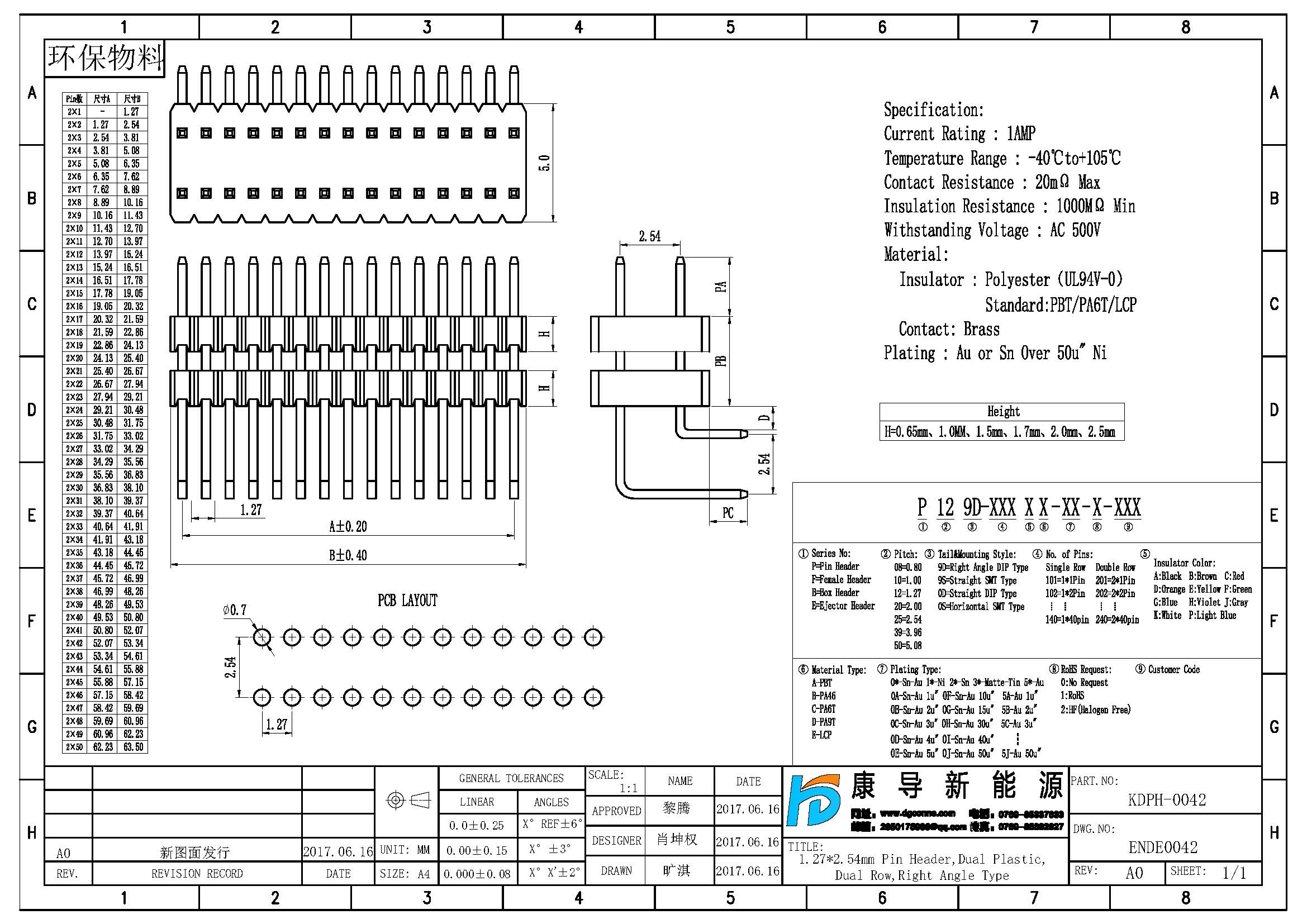 規(guī)格型號(hào):PH:1.27*2.54MM 2*NP 90度 雙排多塑排針
